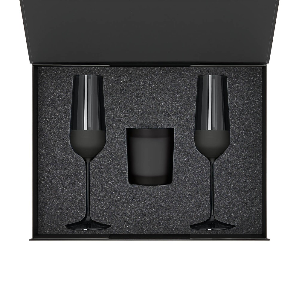 Подарочный набор свеча Энигма (Enigma) + 2 бокала для шампанского Блэк Эдишн (Black Edition) в черной коробке