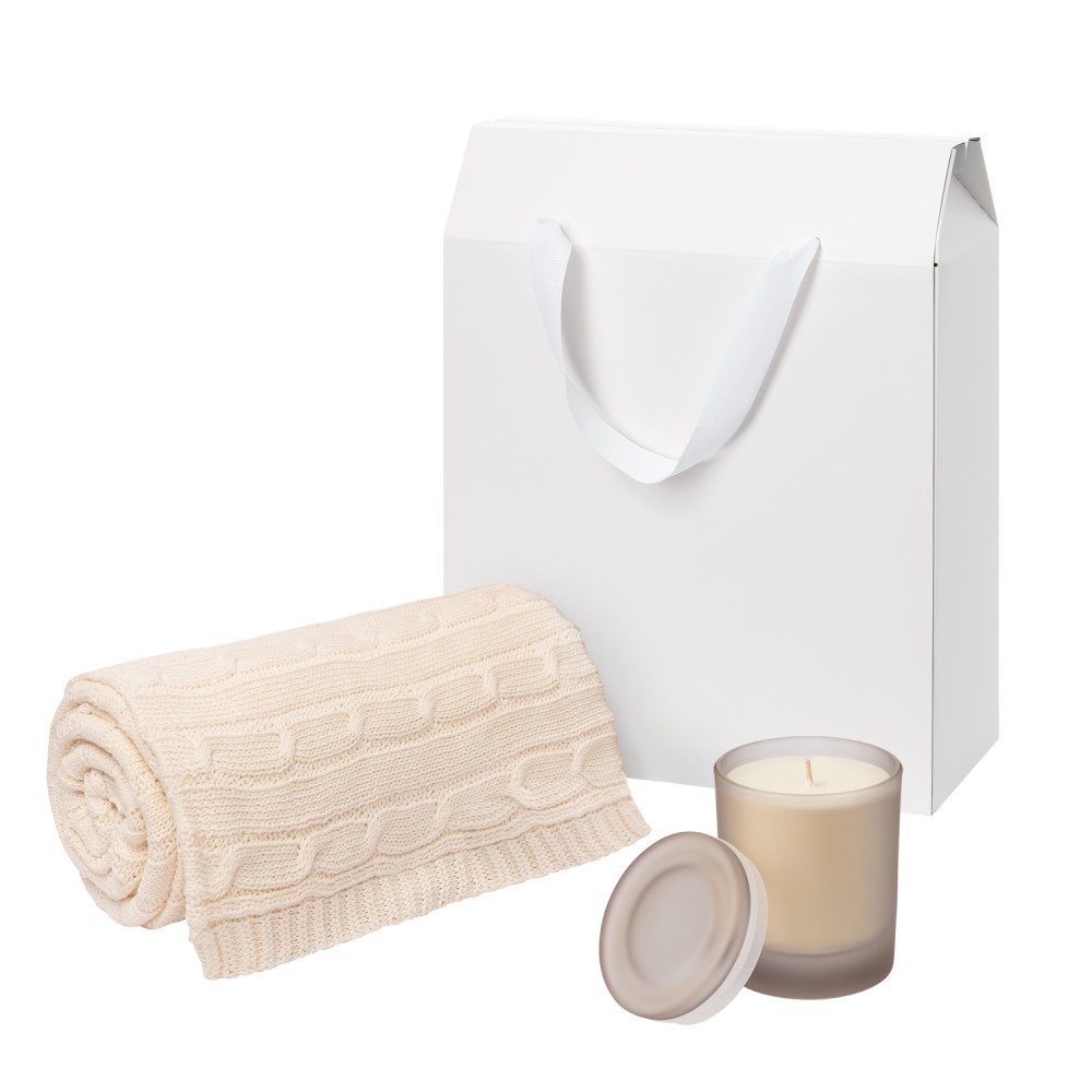 Подарочный набор Мизу (Mizu), Фадо (Fado), бежевый (свеча, плед)