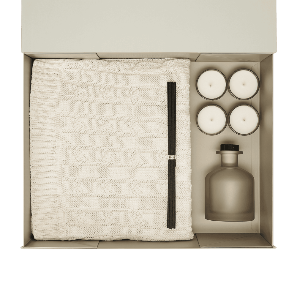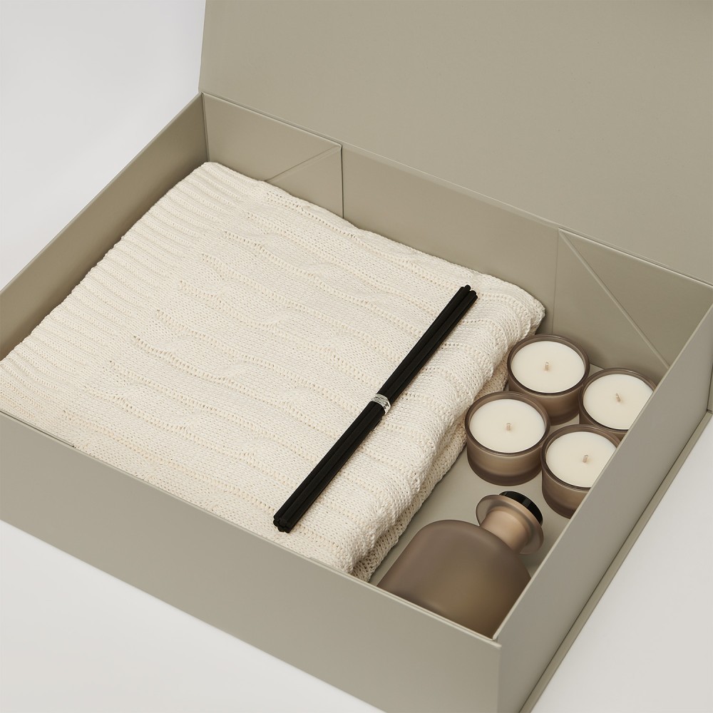 • Подарочный набор Сенто (Sento), Фадо (Fado), бежевый (свеча, диффузор, плед)