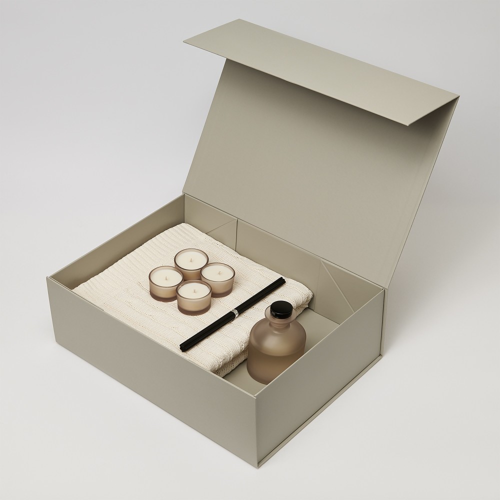 Подарочный набор Сенто (Sento), Мальта Софт (Malta Soft), серый (свеча, диффузор, плед)