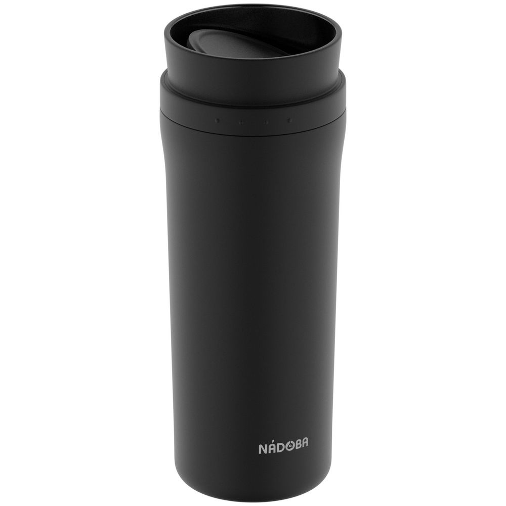 Стильная термокружка с металлическим корпусом и удобным клапаном для питья.