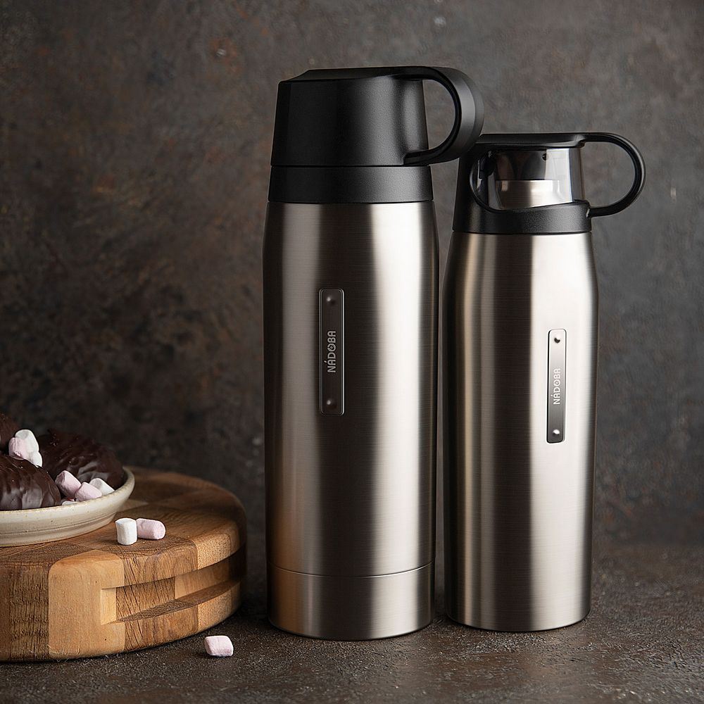 - Двойные стенки из нержавеющей стали. Благодаря вакуумной теплоизоляции напитки остаются горячими или холодными в течение 24 часов