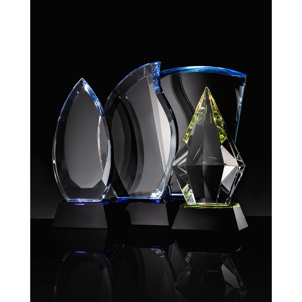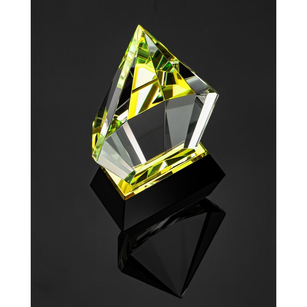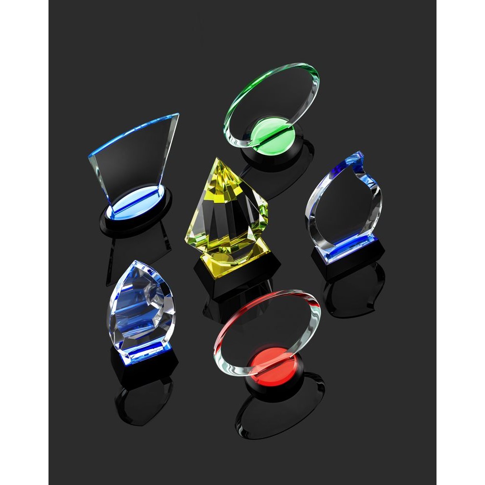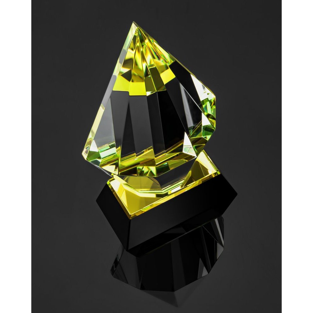 Стела изготовлена из стекла К9, в основе которого лежит оптическое боросиликатное стекло. Эту марку стекла отличает низкий процент посторонних включений, высокий показатель преломления и высокая прозрачность — идеальные качества для изготовления наград премиального уровня.