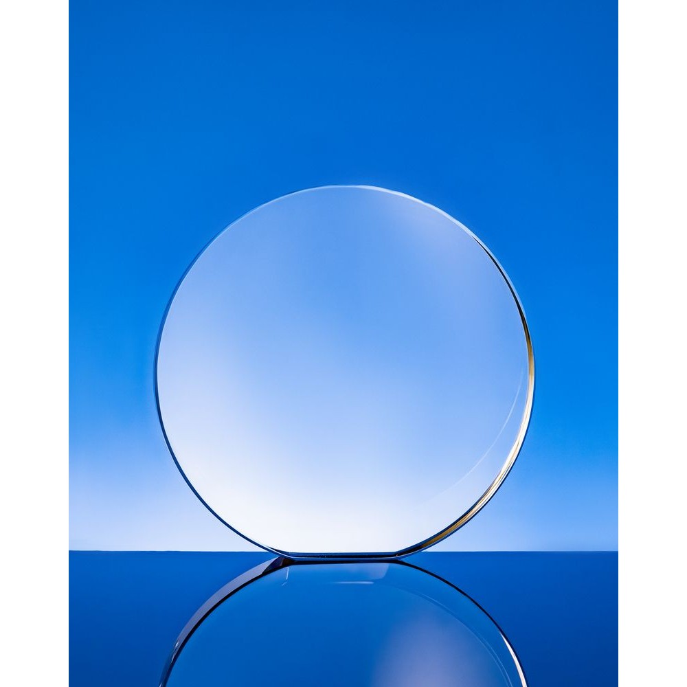 Стела изготовлена из стекла К9, в основе которого лежит оптическое боросиликатное стекло. Эту марку стекла отличает низкий процент посторонних включений, высокий показатель преломления и высокая прозрачность — идеальные качества для изготовления наград премиального уровня.