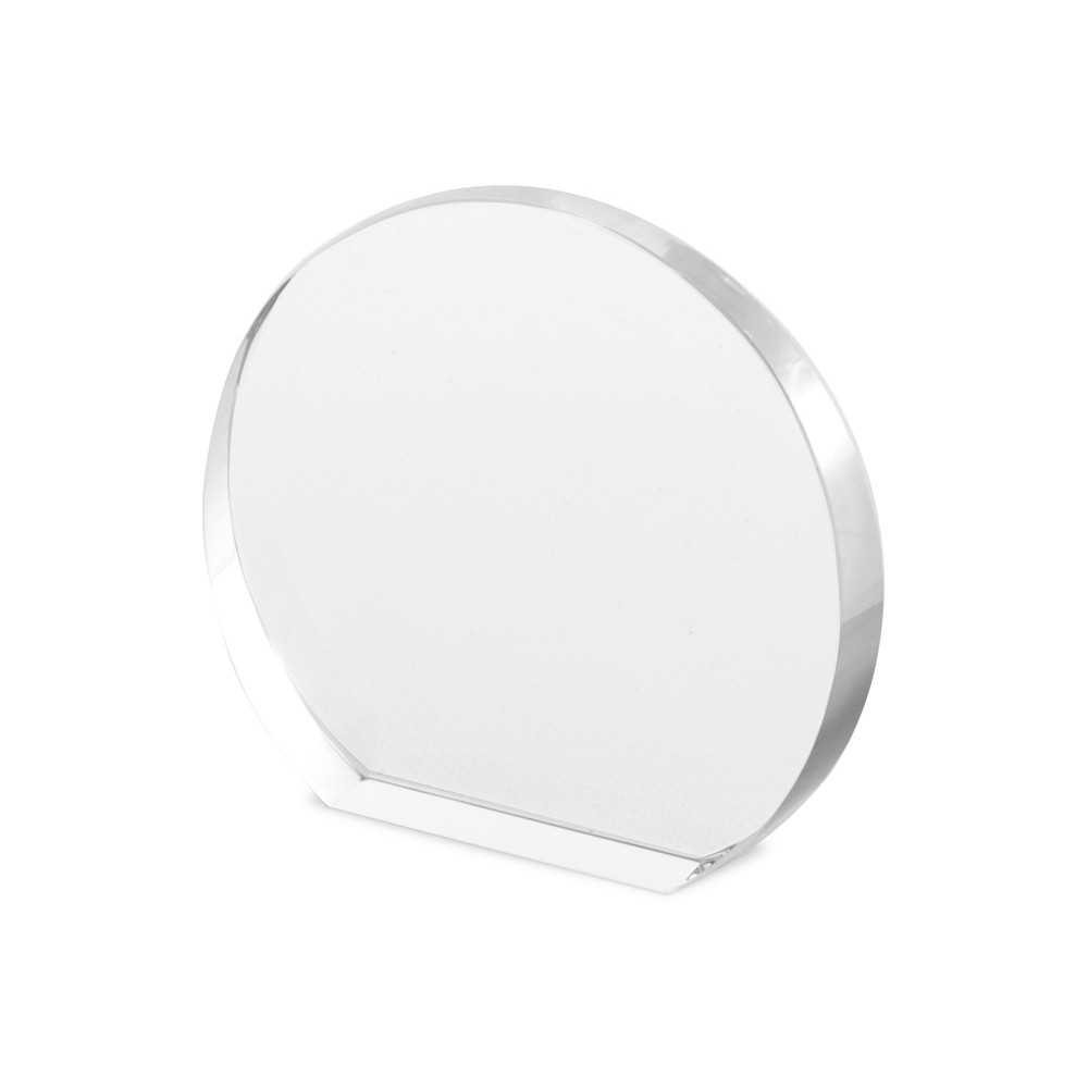 Награда выполнена в форме срезанного с одной стороны круга, что позволяет её поставить без специального основания. Она предельно минималистична и компактна.