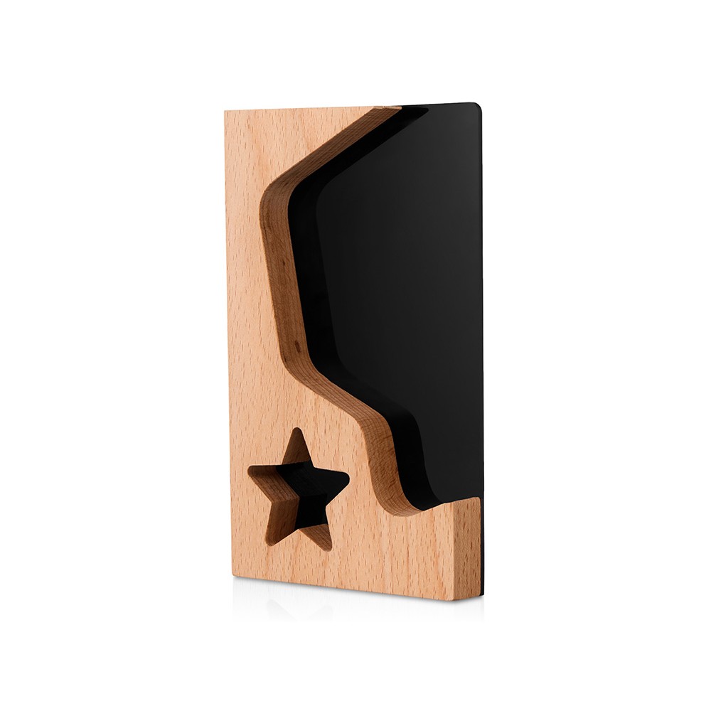 Красивая и современная награда для главных звезд любой компании. Черный акрил добавляет контраста рамке из бука, логотип или наградную надпись можно выгравировать на деревянной части или сделать уникальный дизайн, благодаря полной запечатке акрила методом УФ-печати.