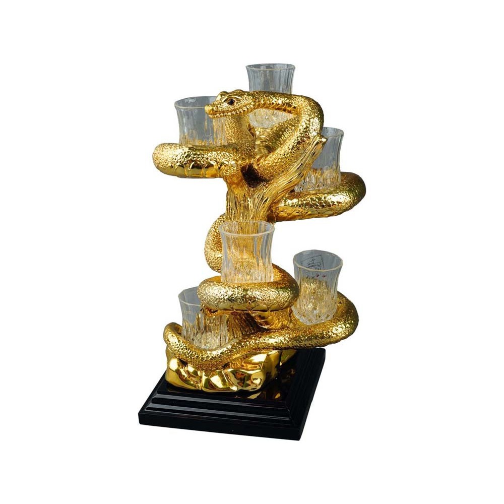 Змея — древний символ мудрости, плодородия и долголетия. Именно поэтому авторы изделия выбрали этот анималистический образ для скульптурной подставки под стопки. Это изысканный бизнес-подарок со вкусом и смыслом для тех, кто ценит тонкую работу высококлассных мастеров и неравнодушен к образным, сложным в исполнении предметам столовой сервировки. В комплекте подставляется 6 стеклянных стопок, что делает набор полноценным сувениром для бизнес-партнеров и других важных персон.