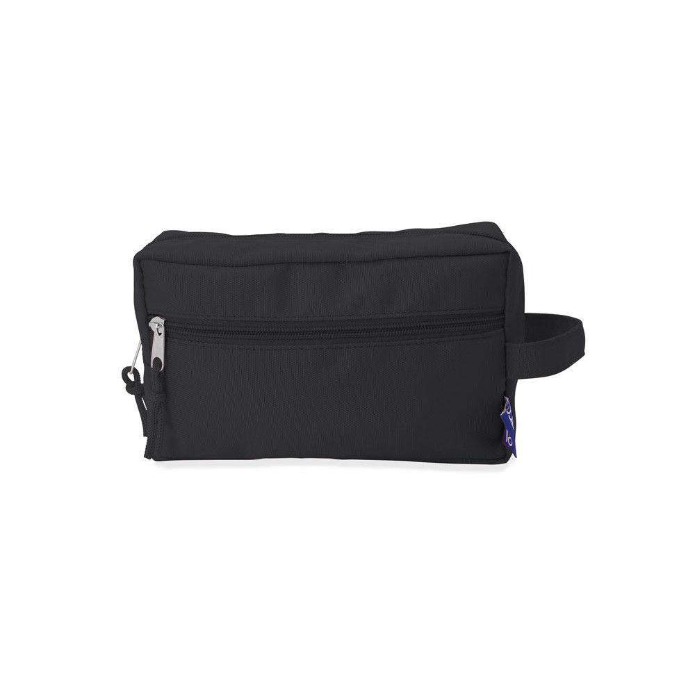 Несессер с двумя отделениями на молнии и ремешком для переноски в тон. Внешняя этикетка с логотипом RPET.