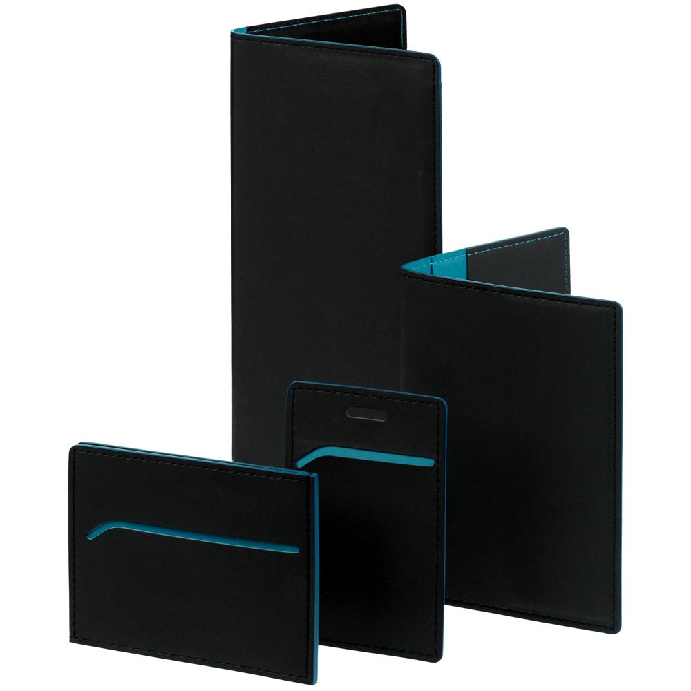 Обложка для паспорта Multimo, черная с бирюзовым
