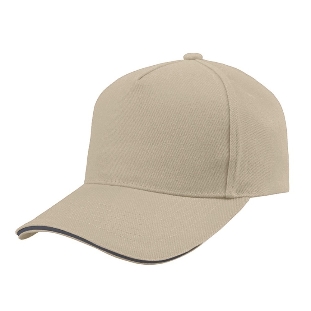 Бейсболка "Cover Sandwich", 5 клиньев, металлическая застежка; беж. + т.синий; 100% хлопок; 370 г/м2