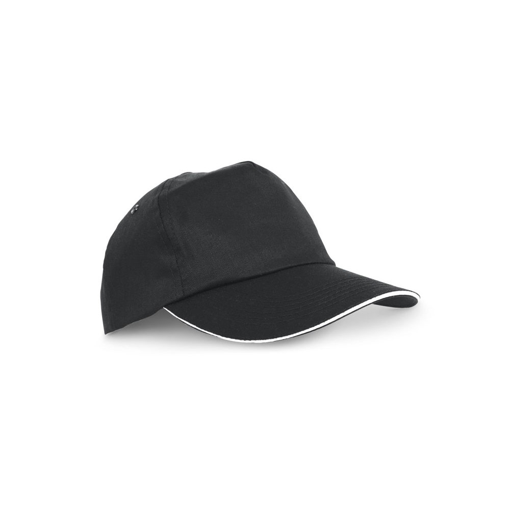 CLAIRE. Бейсболка sandwich, Черный. Бейсболка sandwich из полиэстера на регулируемой застежке-велькро. Вид нанесения, рекомендуемый поставщиком: вышивка, трансфер