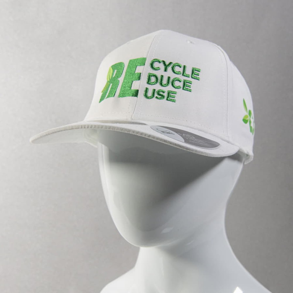 Эта бейсболка создана из материала, для производства которого потребовалось 11 переработанных пластиковых бутылок на кв. метр материала.