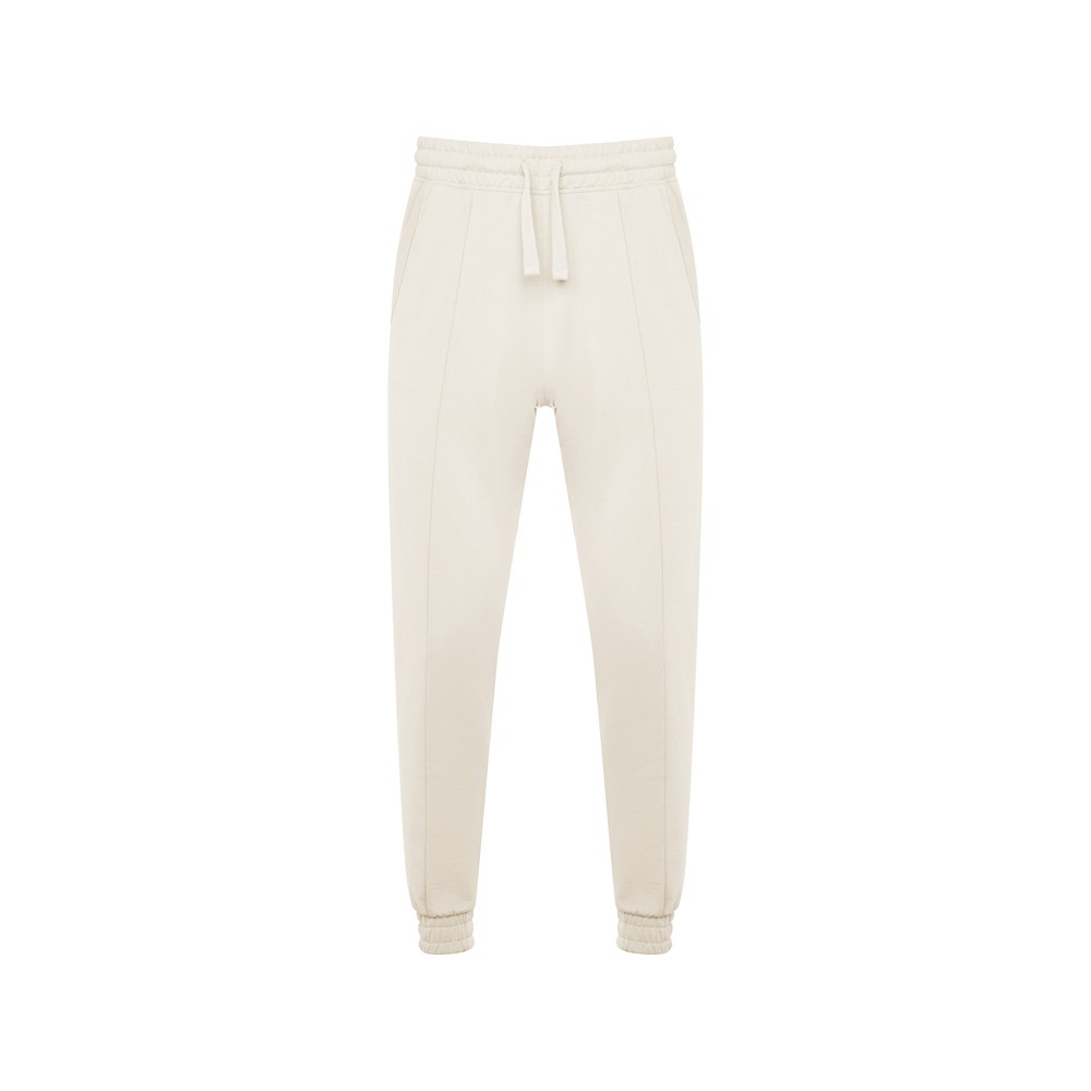 Прямые удлиненные брюки с манжетами на штанинах. Регулируемый эластичный пояс со шнуровкой. Два боковых кармана.