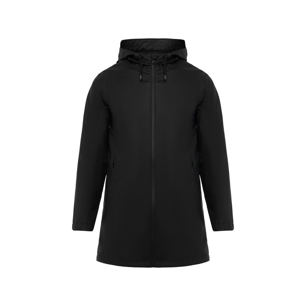Дождевик · Капюшон с козырьком. · Молнии и швы с термической проклейкой. · Контрастные детали черного цвета. · Два боковых кармана на застежке·молнии. · Разрез на заднем подоле.