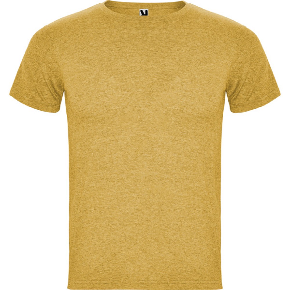 Футболка с короткими рукавами меланжевого цвета. Круглая горловина в рубчик 1 x 1 с усиленными закрытыми внутренними швами. Изготовлена из трубчатой ткани. *Съемная этикетка.