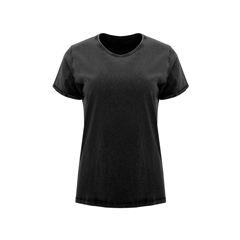 Женская футболка с джинсовым эффектом. Короткий рукав, горловина обработана рибом 1х1 и дополнительно укреплена тесьмой. Двойная отстрочка по пройме. Рукав с закручивающимся краем. В ассортименте также представлена аналогичная мужская модель Husky