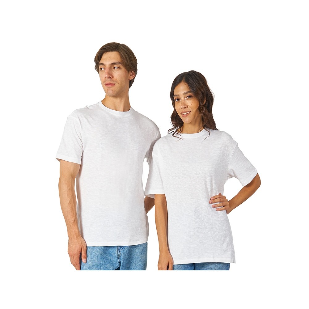 Полотно футболки имеет необычную структуру - с протяжками, но при этом гладкую поверхность, что обеспечивает идеальную поверхность для нанесения: прямая печать, трафаретная или термотрансфер прекрасно ложатся на такое полотно. Декоративная отстрочка по низу рукавов и изделия, а также отстрочка по горловине позволяют футболке дольше сохранять форму. - необычная полотно - идеальный поверхность для нанесения - универсальный прямой силуэт