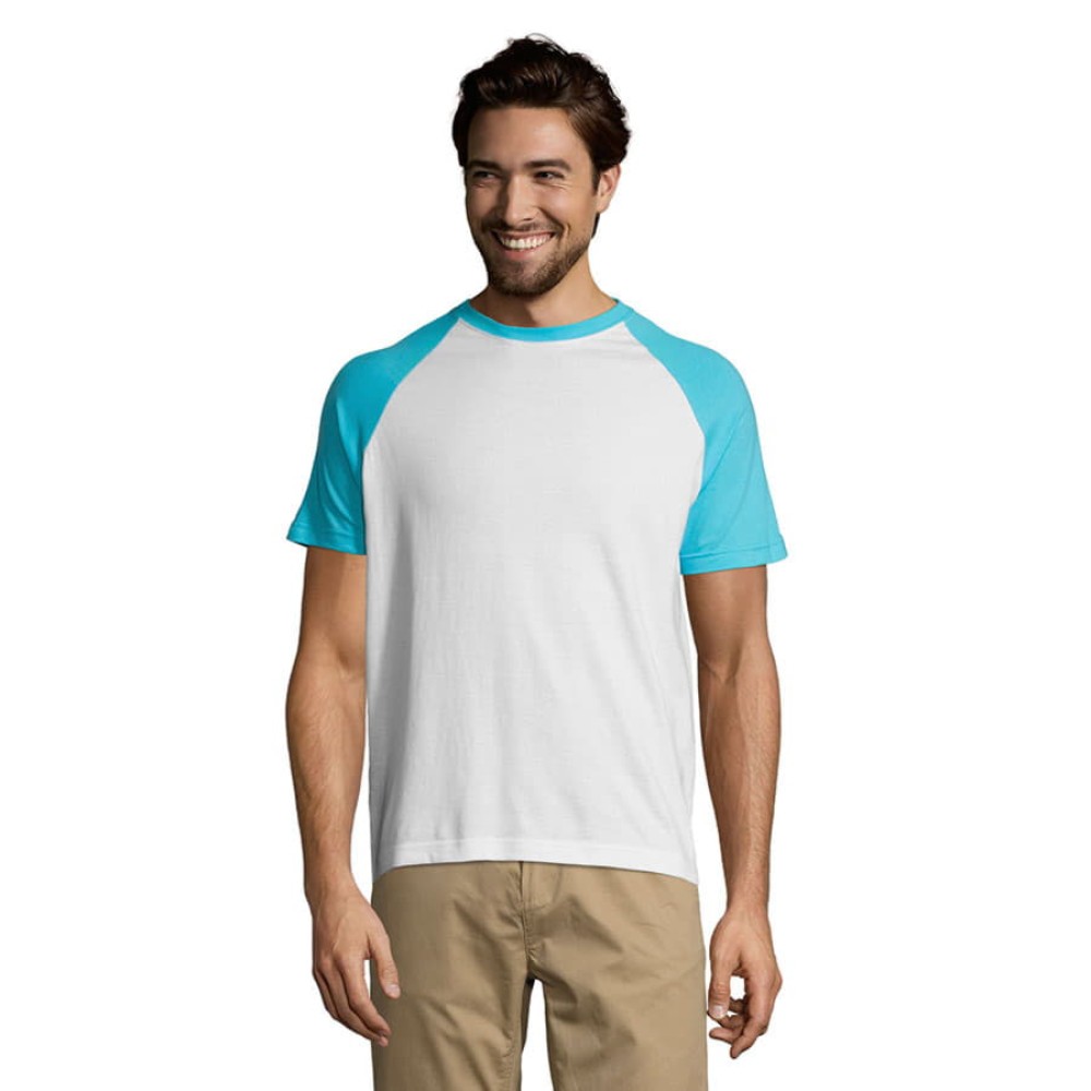 Двухцветная мужская футболка FUNKY является идеальной парой к женской футболке MILKY. Благодаря констрастирующим цветным коротким рукавам реглан она выглядит оригинально и стильно, а отсутствие боковых швов обеспечивает широкое поле для печати любого креатива. По цветному вороту проложена укрепляющая тесьма, край ворота отделан резинкой с эластаном.