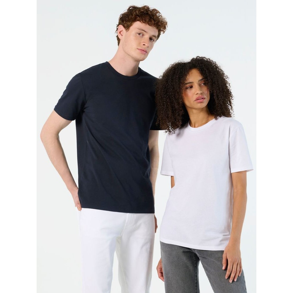 Футболка унисекс с боковыми швами из переработанных материалов. Для изготовления каждой футболки переработано 4 бутылки, из которых в последствии была сделана полиэстеровая пряжа.