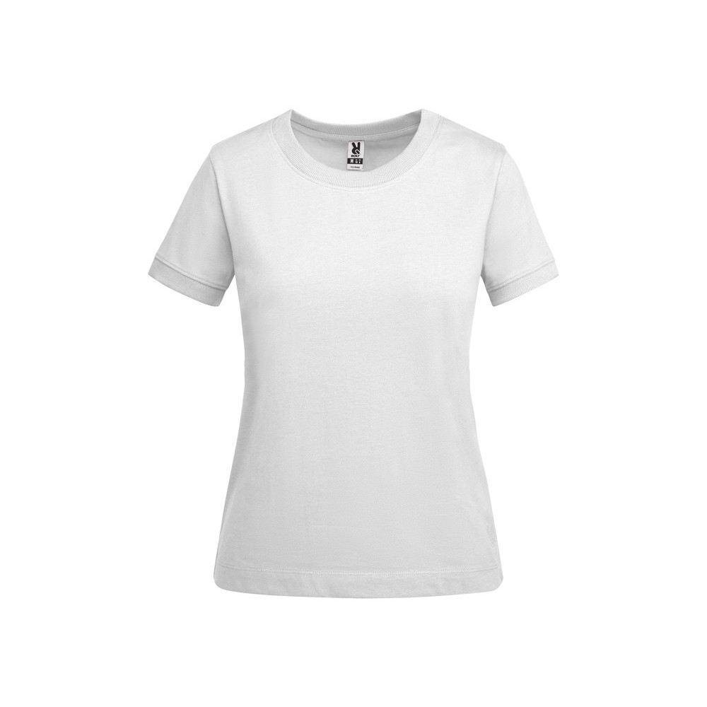 Женская футболка с коротким рукавом из плотного хлопка. Широкая горловина в рубчик 2x1 и окантовка краев рукавов. Усиленные закрытые швы по горловине. Боковые швы. Наличие логотипа Roly на левой стороне низа и широкая отстрочка.