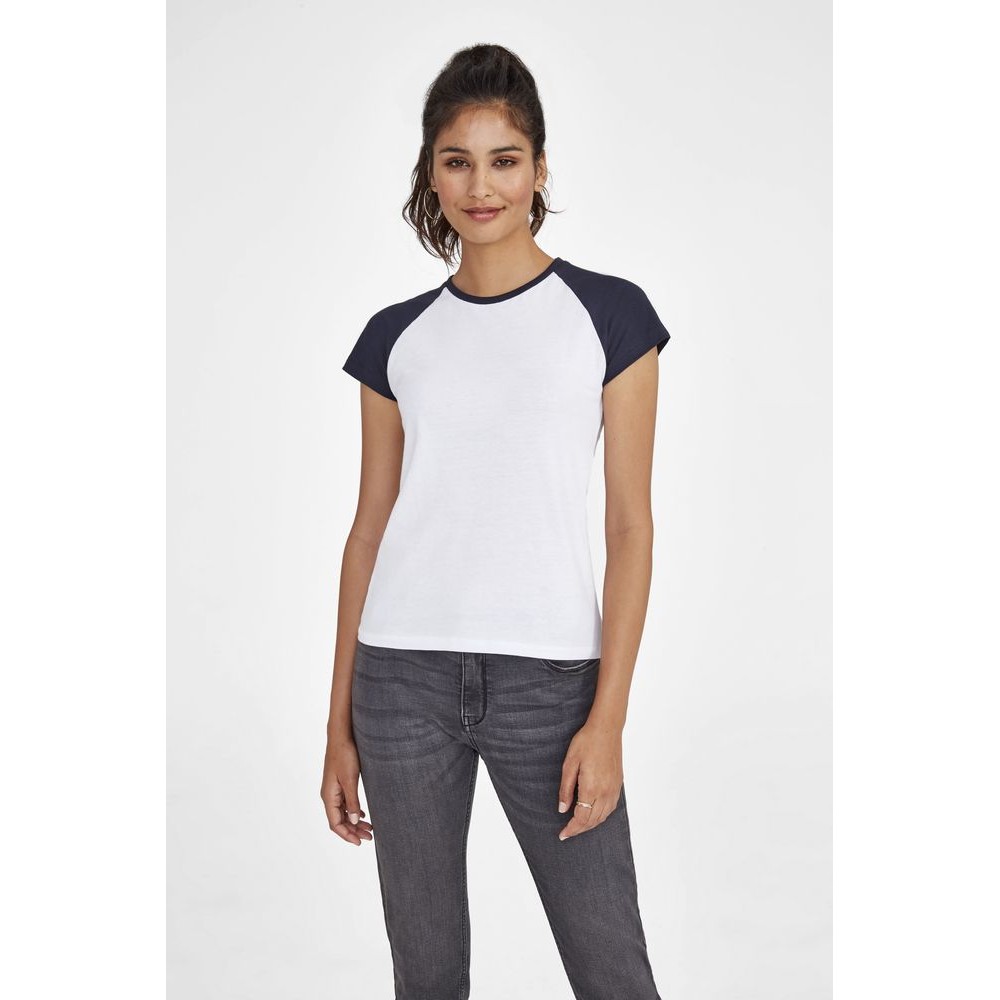 Технические характеристики Футболка женская Milky 150, белая с темно-cиним