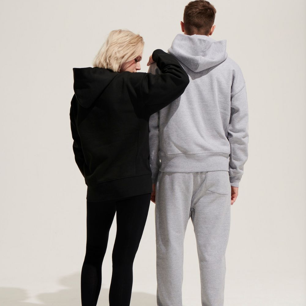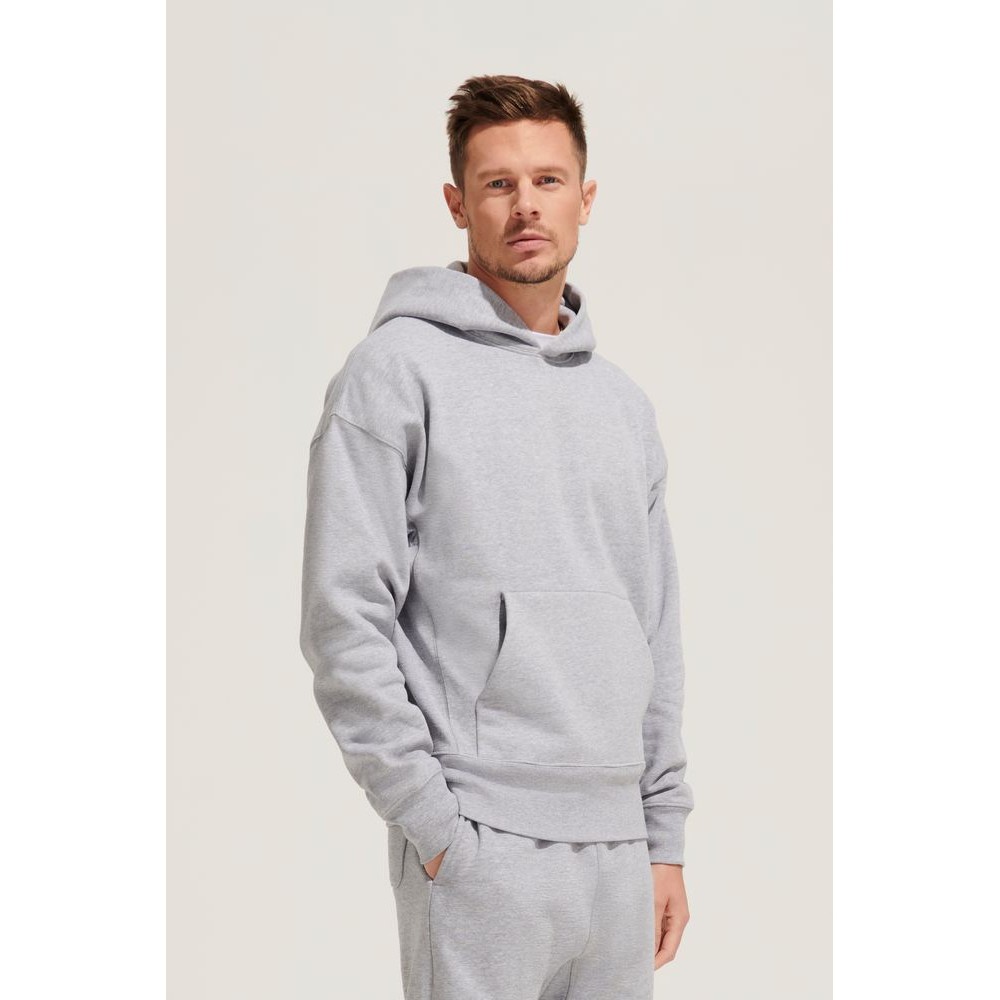 Худи унисекс со спущенным плечом и карманом-кенгуру.