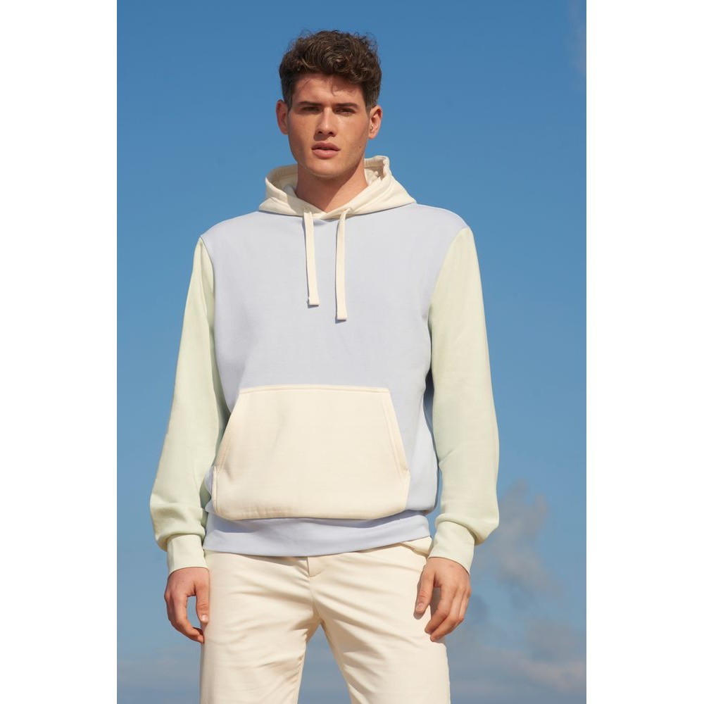 Трехцветное утепленное худи унисекс из органического хлопка и переработанного полиэстера.