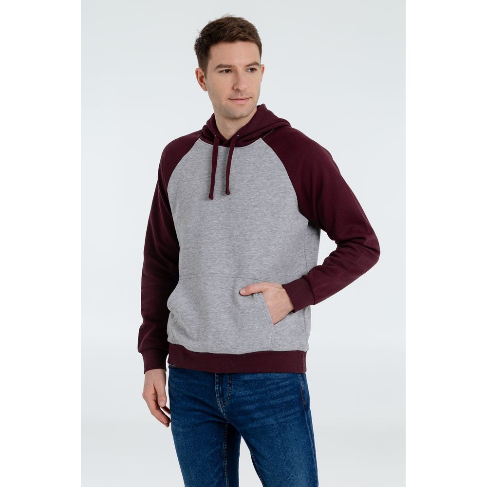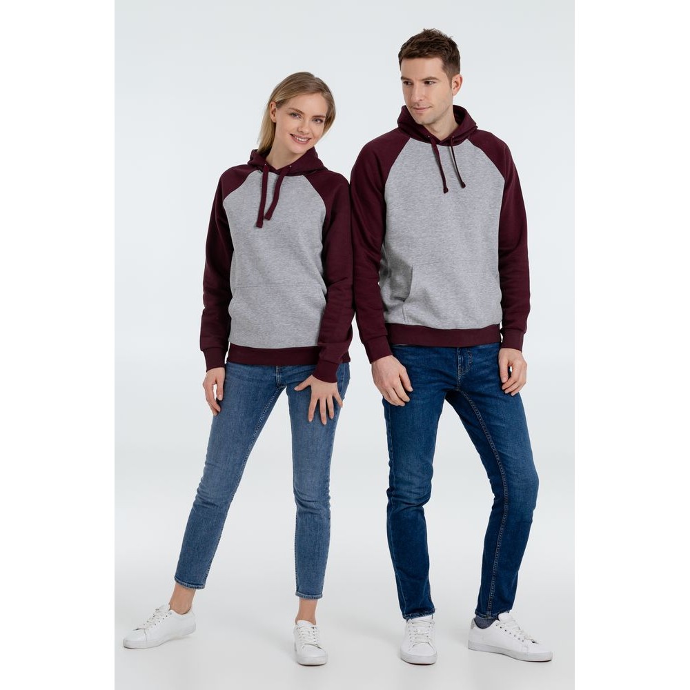Технические характеристики Толстовка унисекс Seattle, серый меланж с бордовым