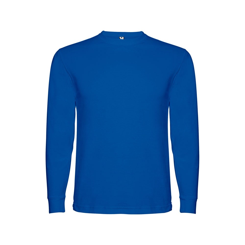 Детская футболка с длинным рукавом и боковыми швами. Круглый вырез горловины отделан рибом 1х1. Плечевые швы и горловина спинки усилены тесьмой.