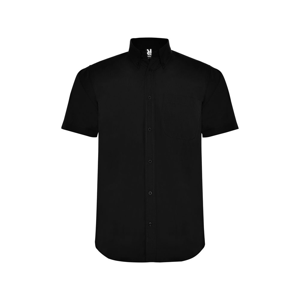 Рубашка мужская с коротким рукавом на семи пуговицах. Накладной карман на груди слева, закругленный низ изделия. Уголки воротника продублированы пуговицами. В ассортименте представлена аналогичная женская модель рубашки Aifos.