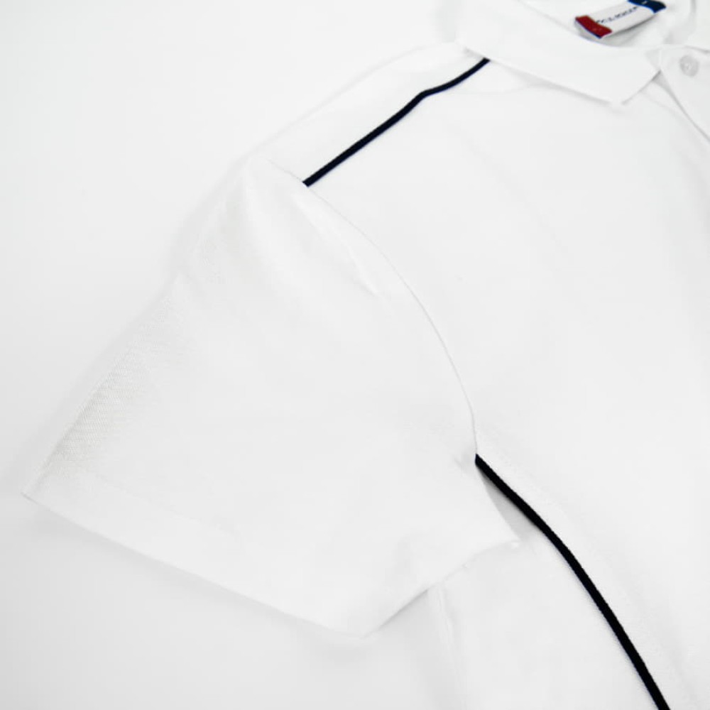 Эластичный, держащий форму воротник. Усиленная планка с перламутровыми пуговицами. Контрастный кант в швах подчеркивает приталенный силуэт.