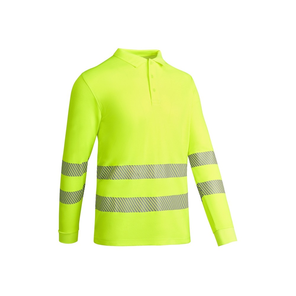 Рубашка поло с длинным рукавом и воротником в рубчик 1x1. Планка с застежкой на 3 пуговицы. Две светоотражающие сегментированные полосы на груди и рукавах. Микс полиэстера и хлопка для повышенной воздухопроницаемости. Дополнительный карман.