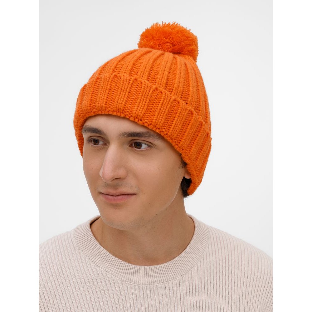 Шапка HappyGo с отворотом выполнена крупной резинкой из мягкой акриловой пряжи, которая создает объем и дарит тепло. Пышный помпон сразу создает запоминающийся зимний образ, добавляя ему игривости и легкости.
