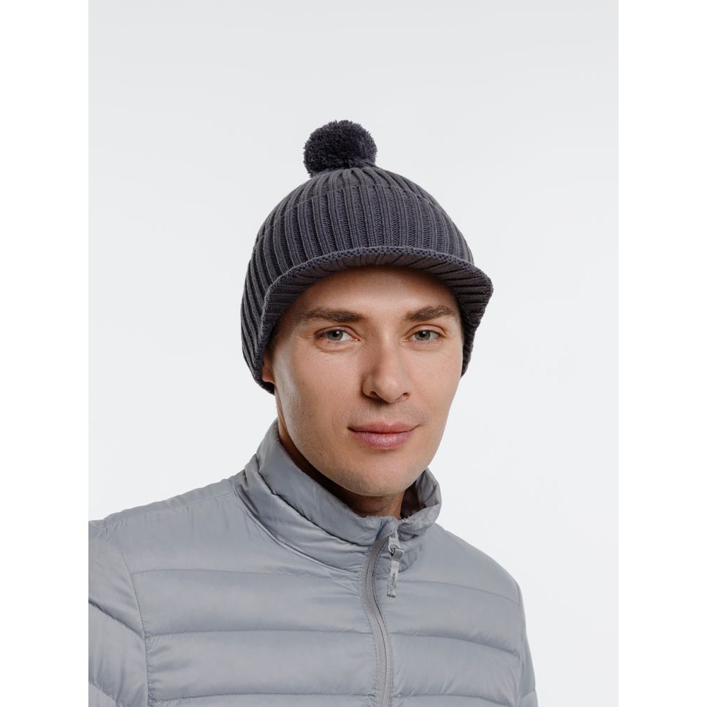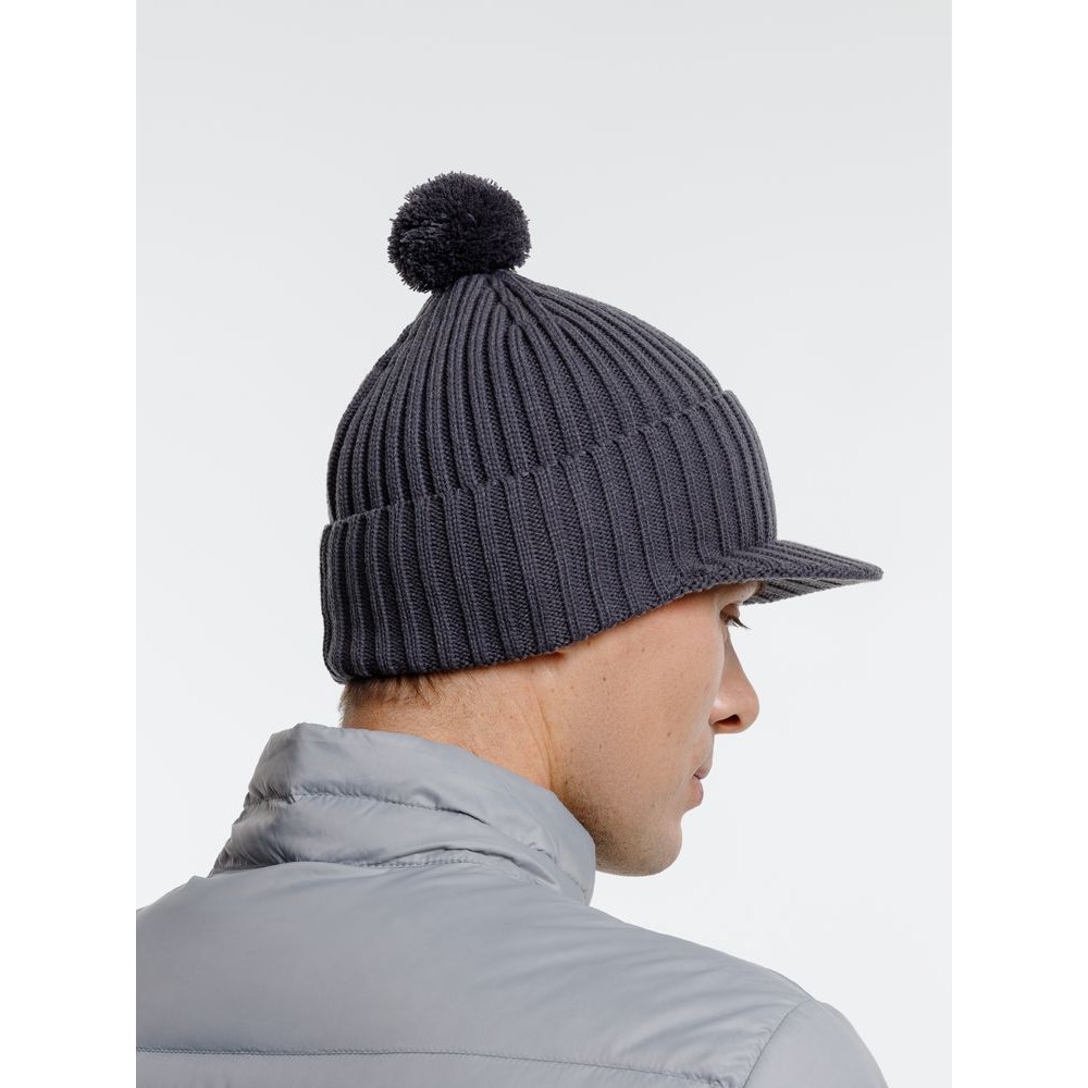 Технические характеристики Вязаная шапка с козырьком Peaky, серая (антрацит)