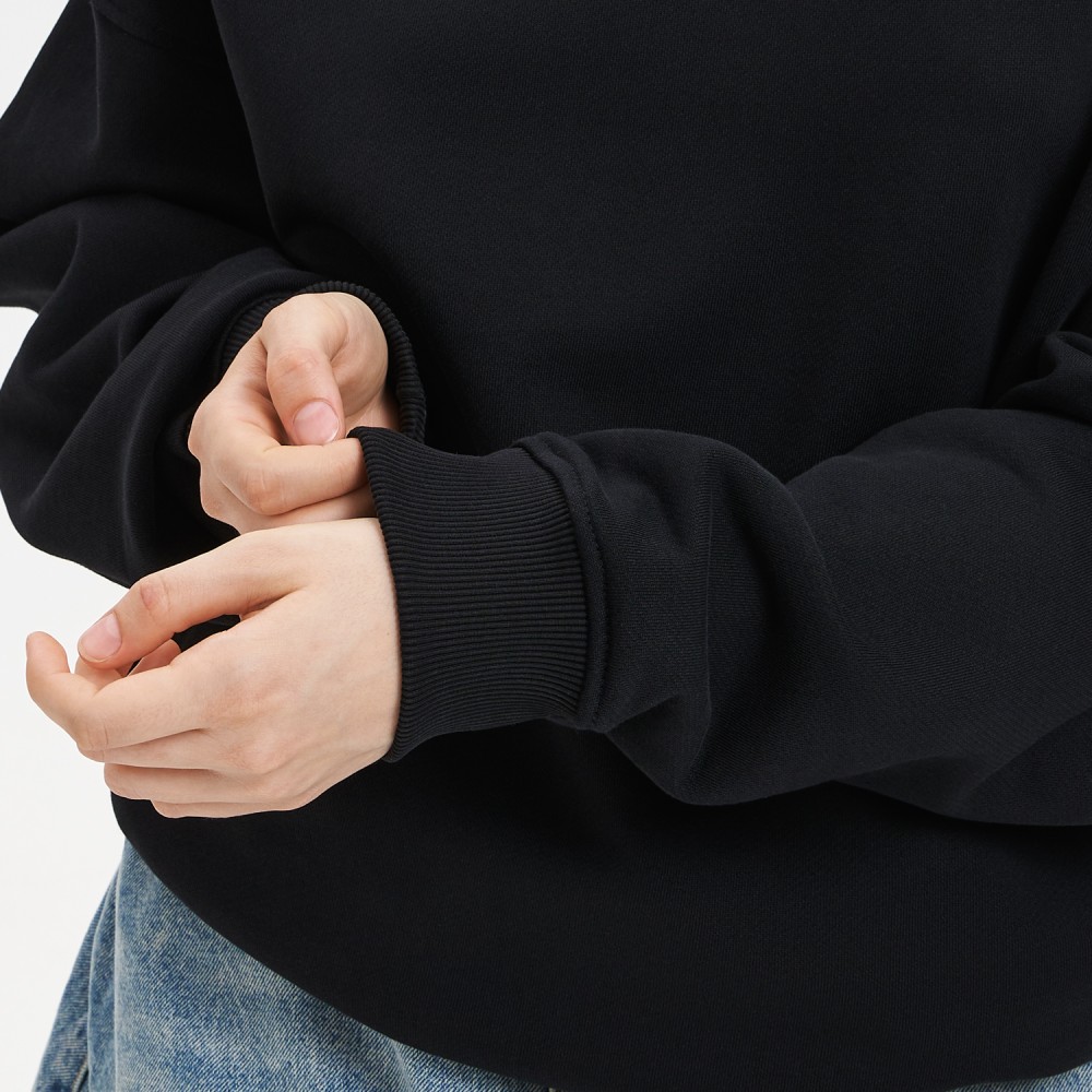 Модель выполнена из высококачественного хлопкового футера плотностью 380 г/м. Объёмная, но мягкая ткань комфортна для ежедневной носки.
