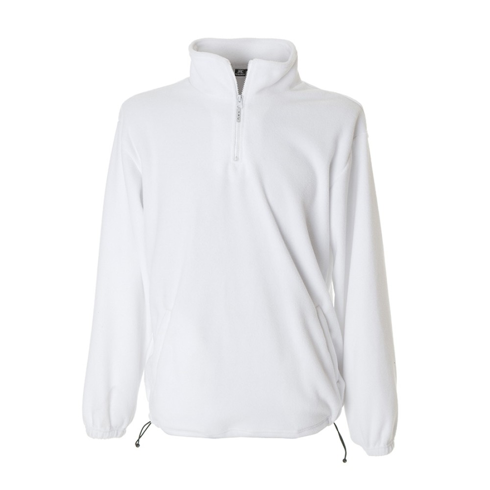 Основная ткань: цвет, близкий к Pantone Standart white Утепленная толстовка повышенной плотности. Удобный воротник-стойка на молнии. Светоотражающий съемный пуллер с символикой JRC. Два кармана на молнии. Утягивающий шнурок по низу изделия. Эластичные резинки по низу рукавов.