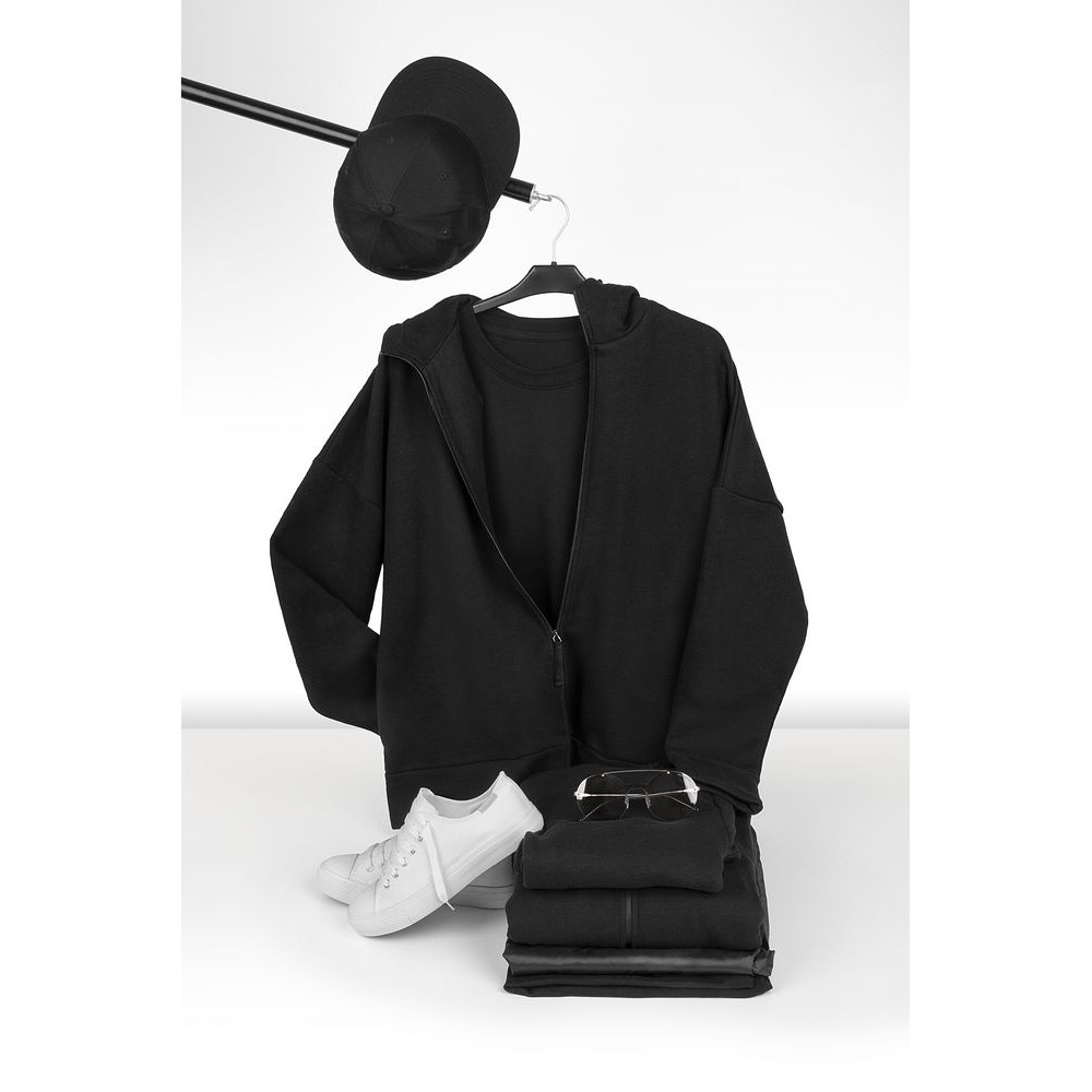 Базовая повседневная одежда актуального покроя в стиле унисекс разработана в рамках единой коллекции и легко собирается в комплекты. Специально спроектированные лекала и технологии пошива открывают простор для любых вариантов кастомизации и нанесения изображений. На видимой части изделий нет лейблов с айдентикой бренда, а название бренда с уходника легко удалить.