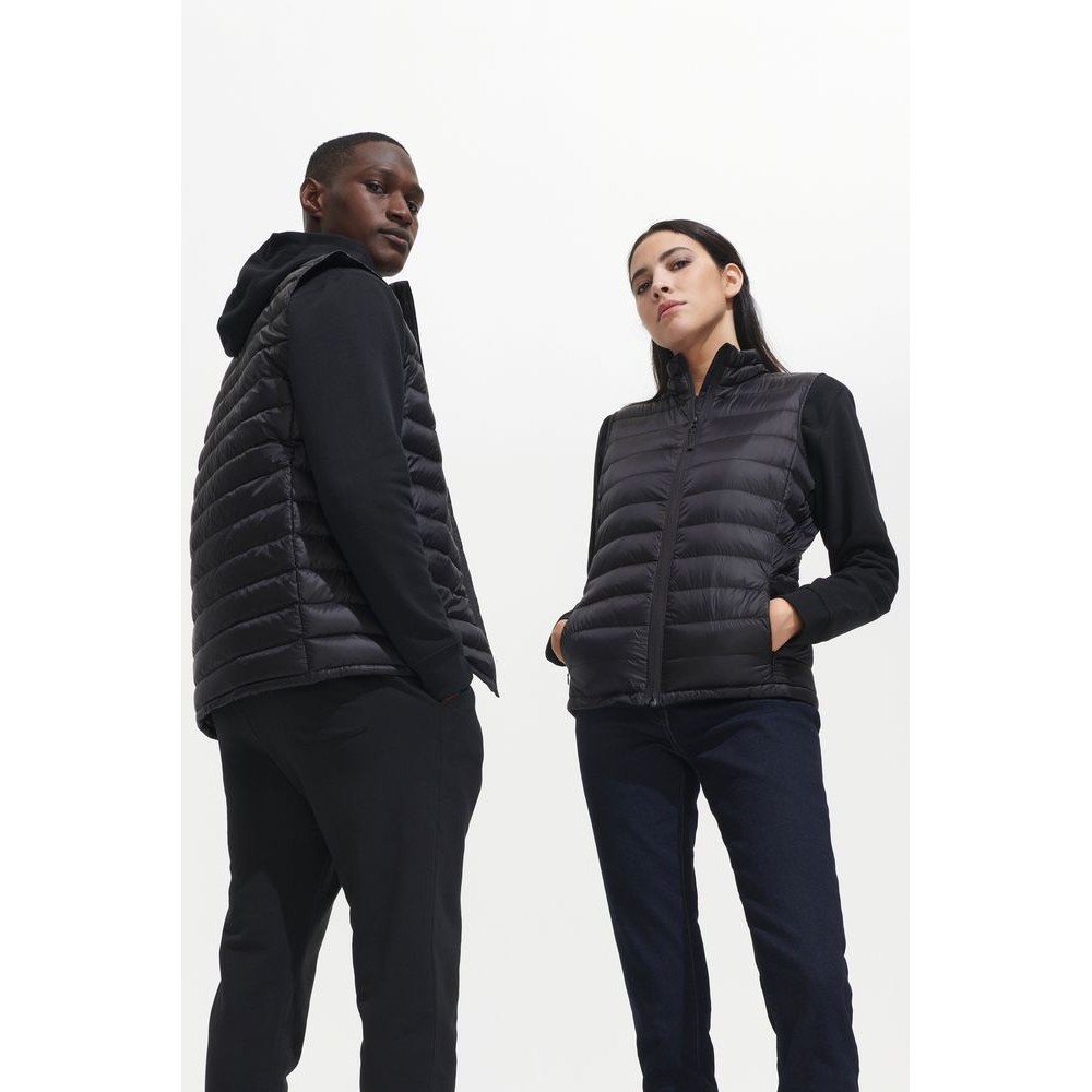 Мужской стеганый жилет облегающего кроя на молнии с воротником-стойкой.