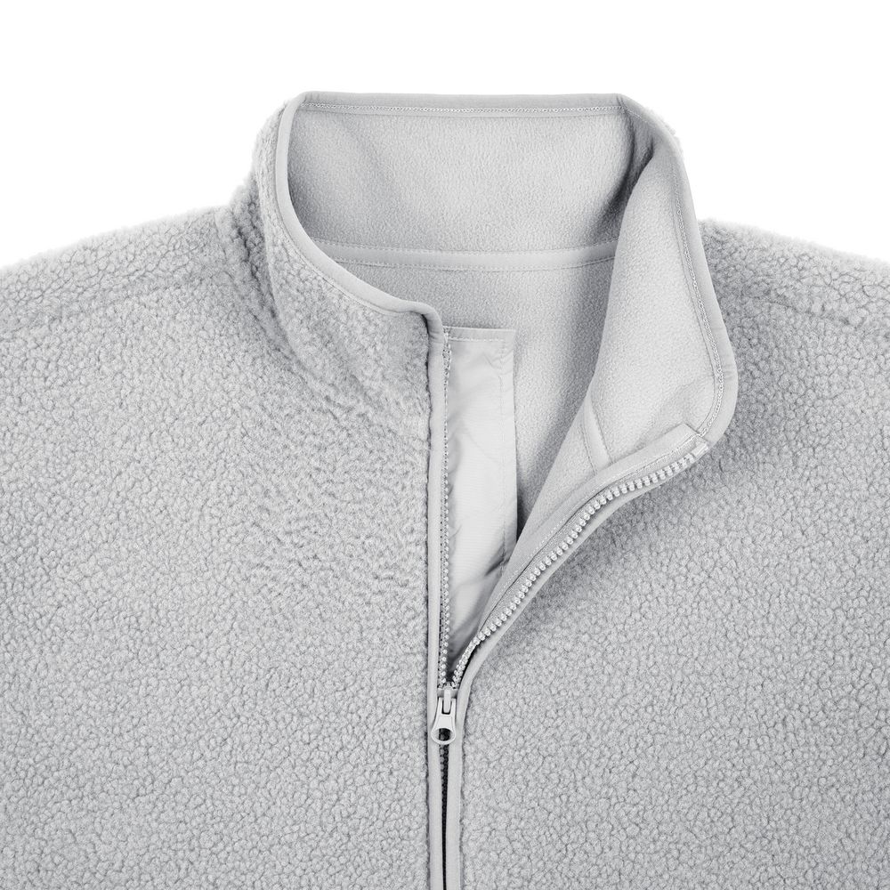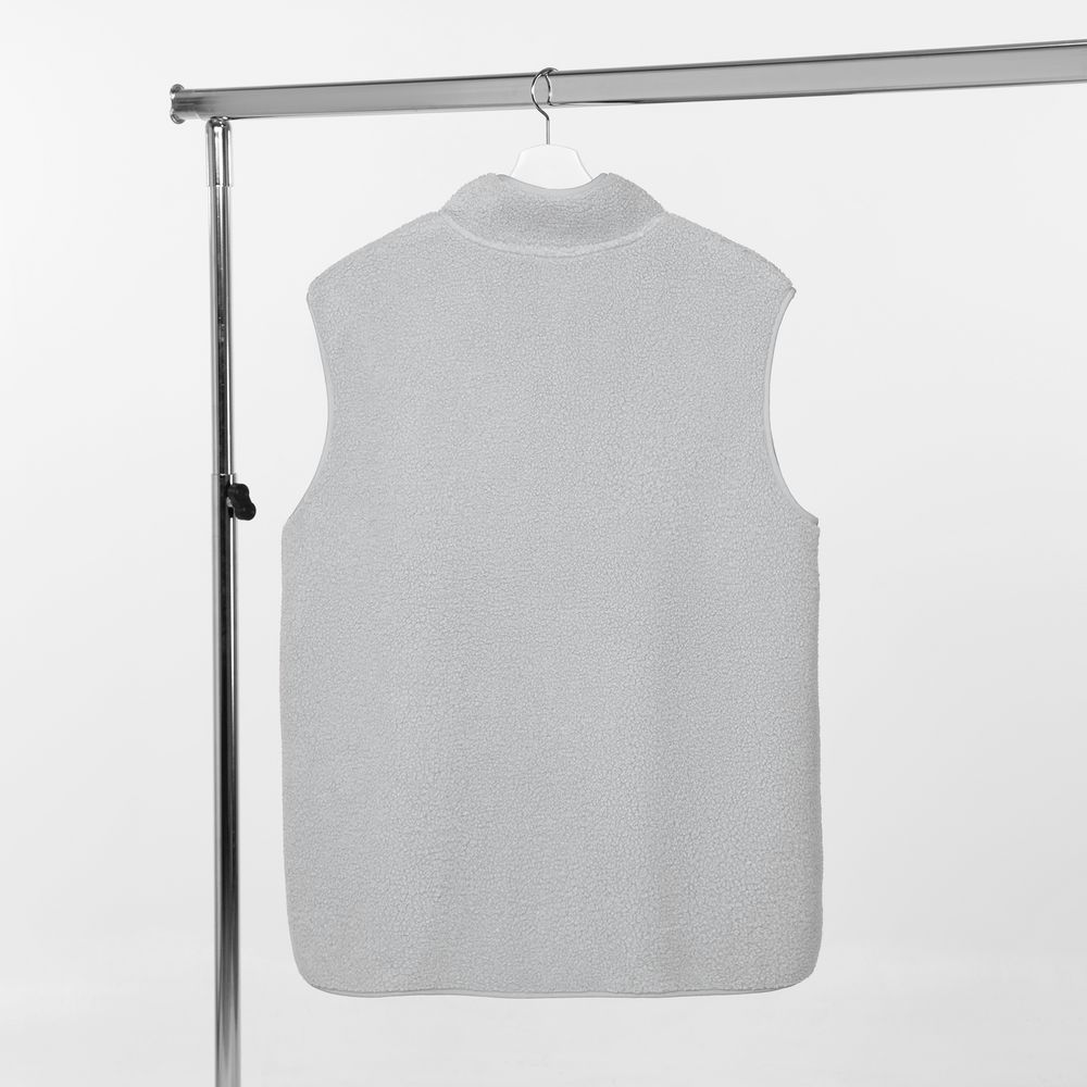 Жилет на молнии из современного двухслойного материала — модный искусственный мех снаружи и уютный флис внутри. Накладной карман из гладкого нейлона создает заметный визуальный контраст и делает жилет Oblako по-настоящему стильным предметом гардероба.