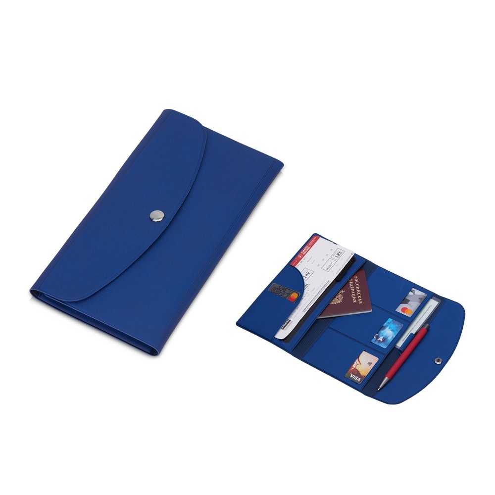 Органайзер для документов на кнопке с отделением для купюр и ручки, упаковка в индивидуальный пакет, синий/темно-синий
