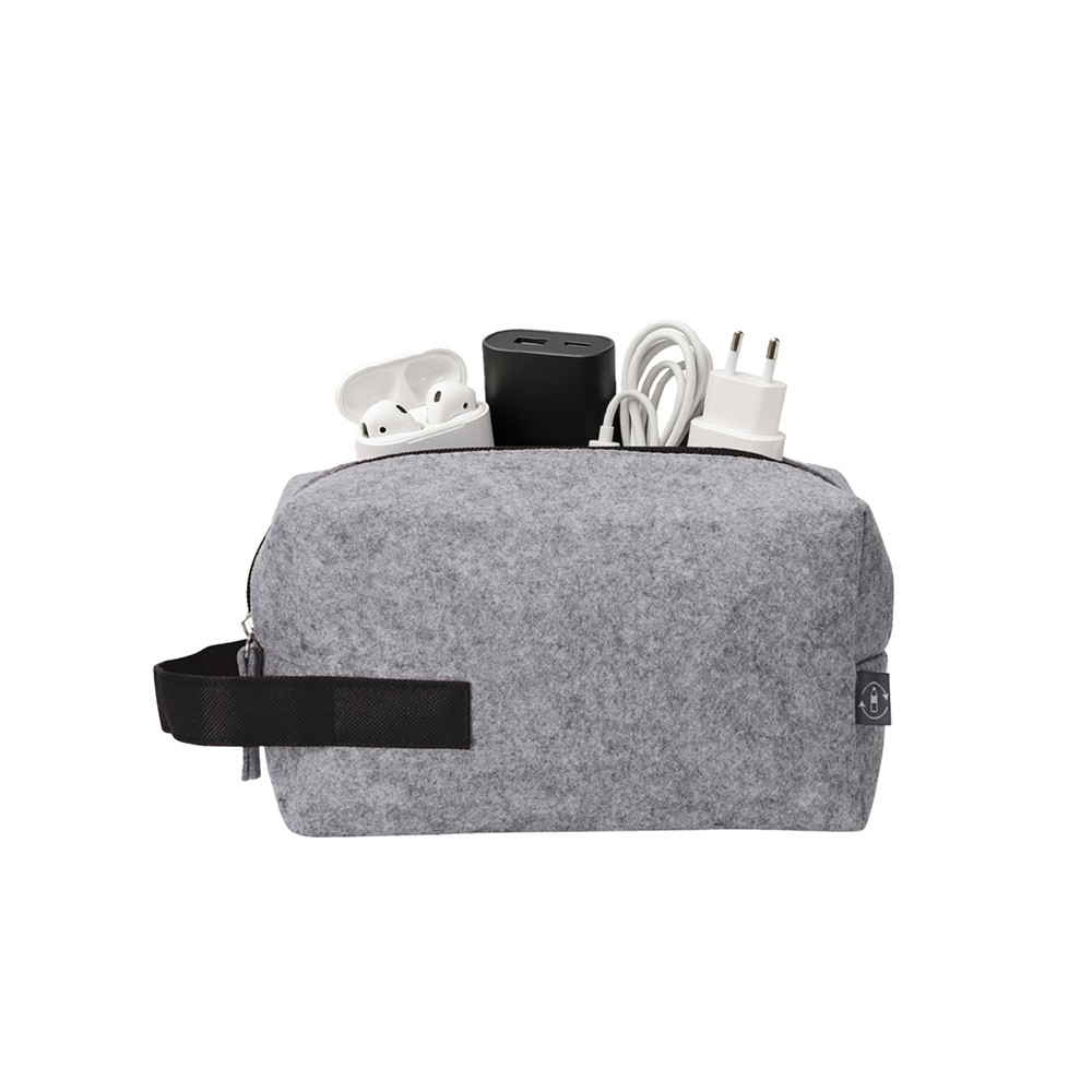 Технические характеристики Органайзер для электроники и проводов Felt из RPET-фетра с ручкой, серый с черным