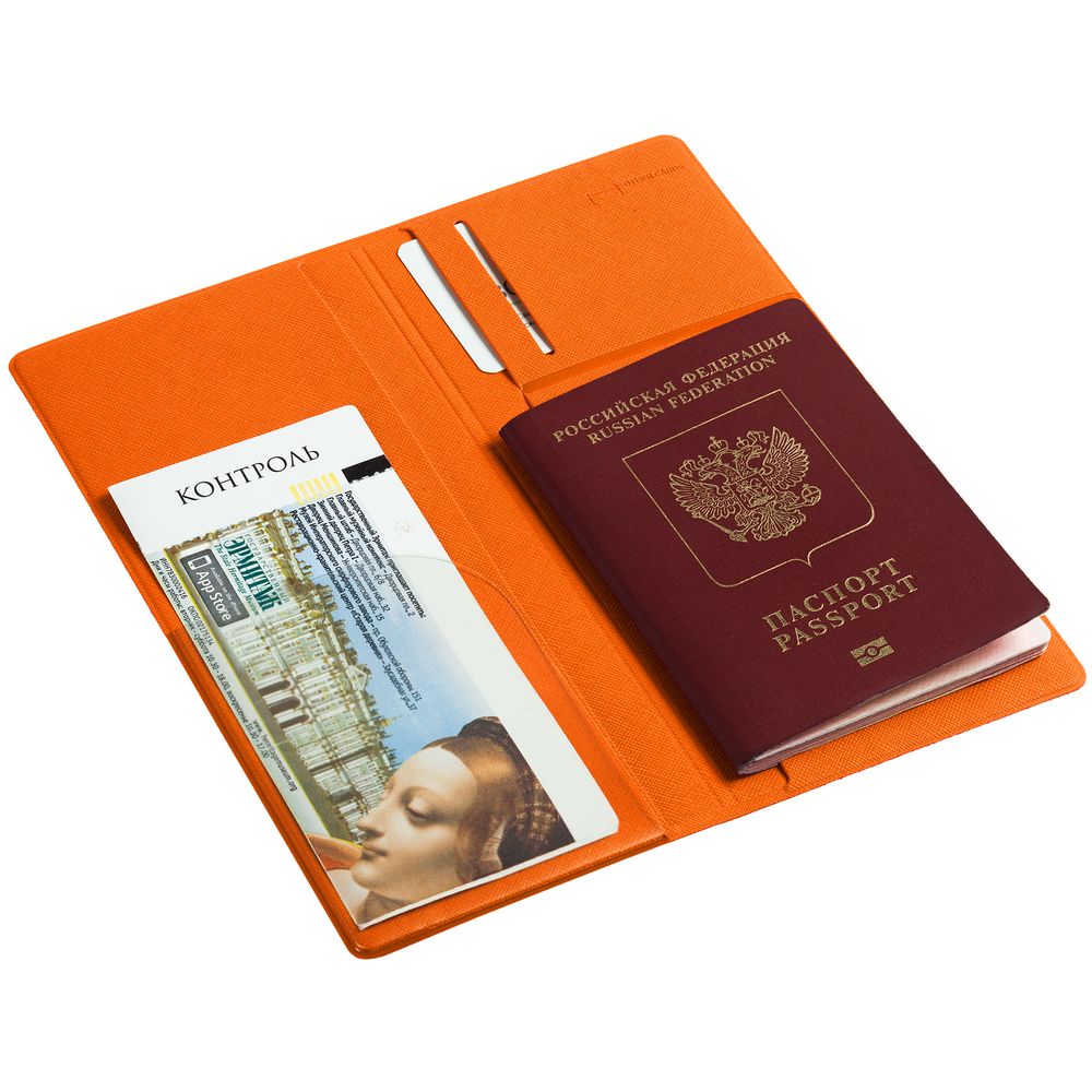 Органайзер из искусственного материала, имитирующего сафьяновую кожу, имеет 5 отделений: для билетов, паспорта, визиток или кредитных карт.