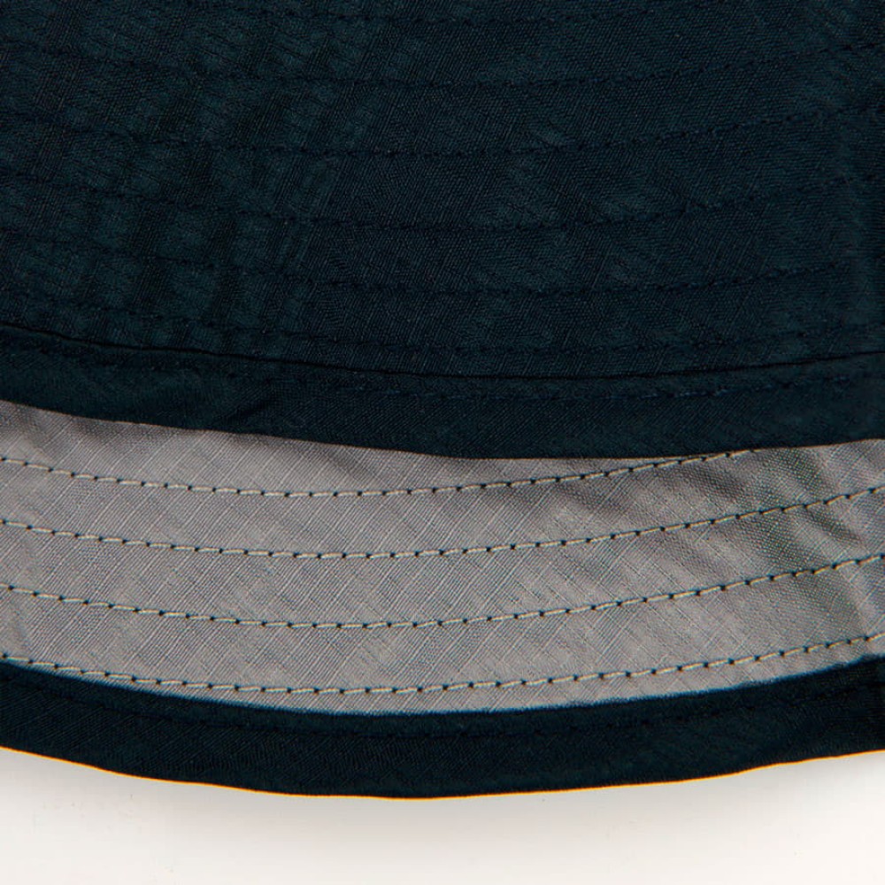 Стильная двусторонняя панама из переработанного полиэстера, хорошо защищающая от воды и солнца.