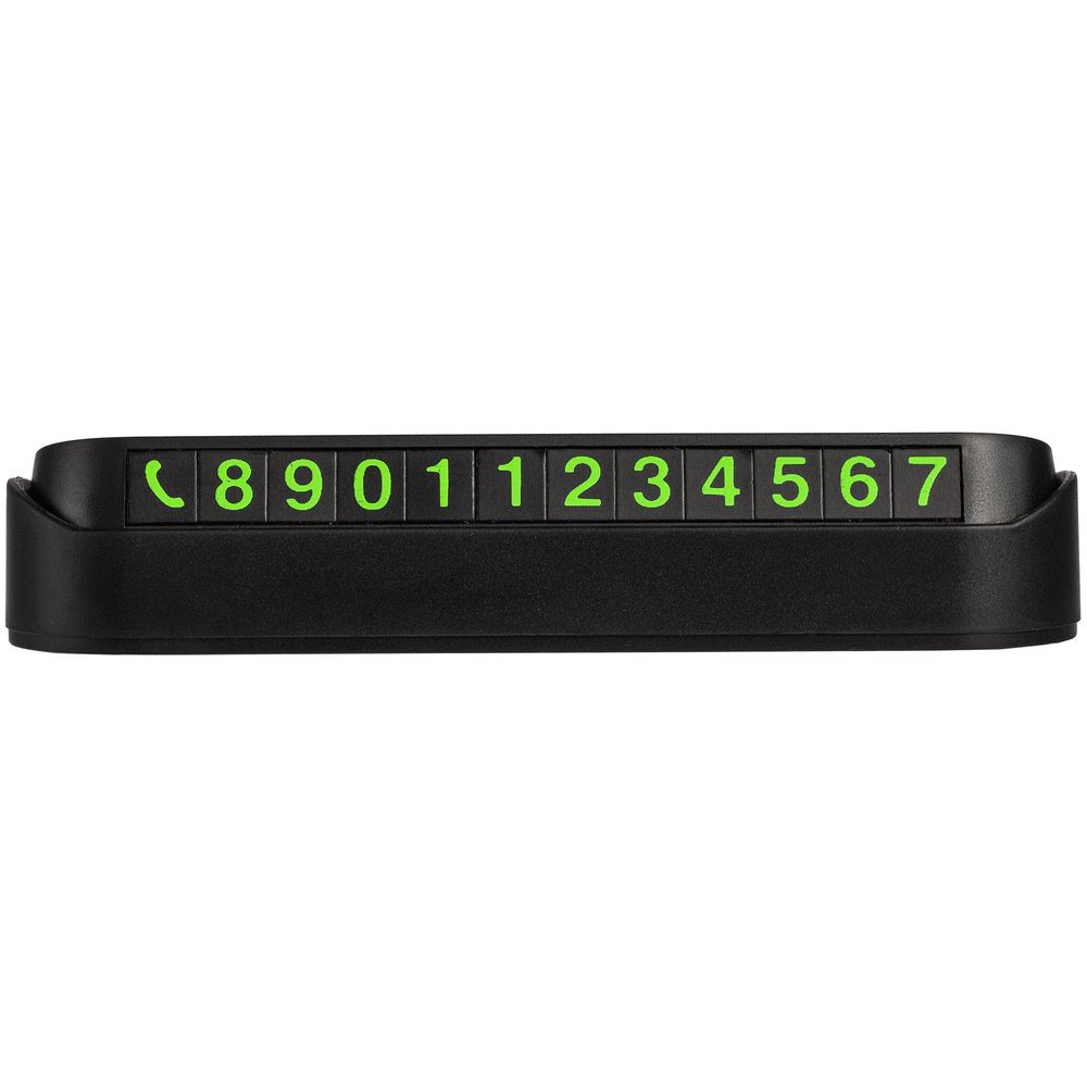 В наборе подставка с клейким основанием и комплект магнитных символов — при изменении номера телефона данные на визитке легко скорректировать.