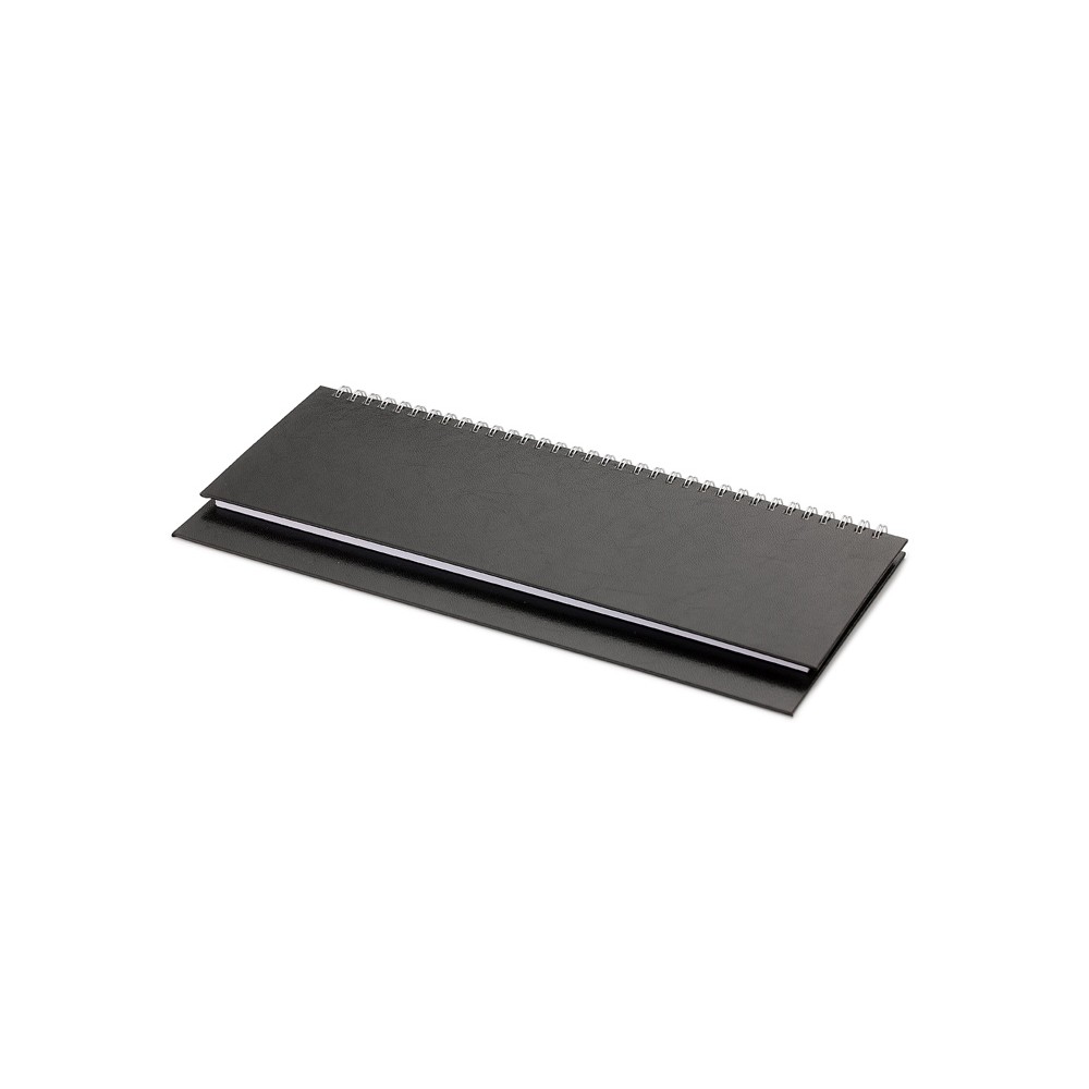 Недатированный планинг на гребне, цвет черный, твердый переплет, 128 страниц. Плотность бумаги 70 грамм высшего сорта. Печать в 2 краски.