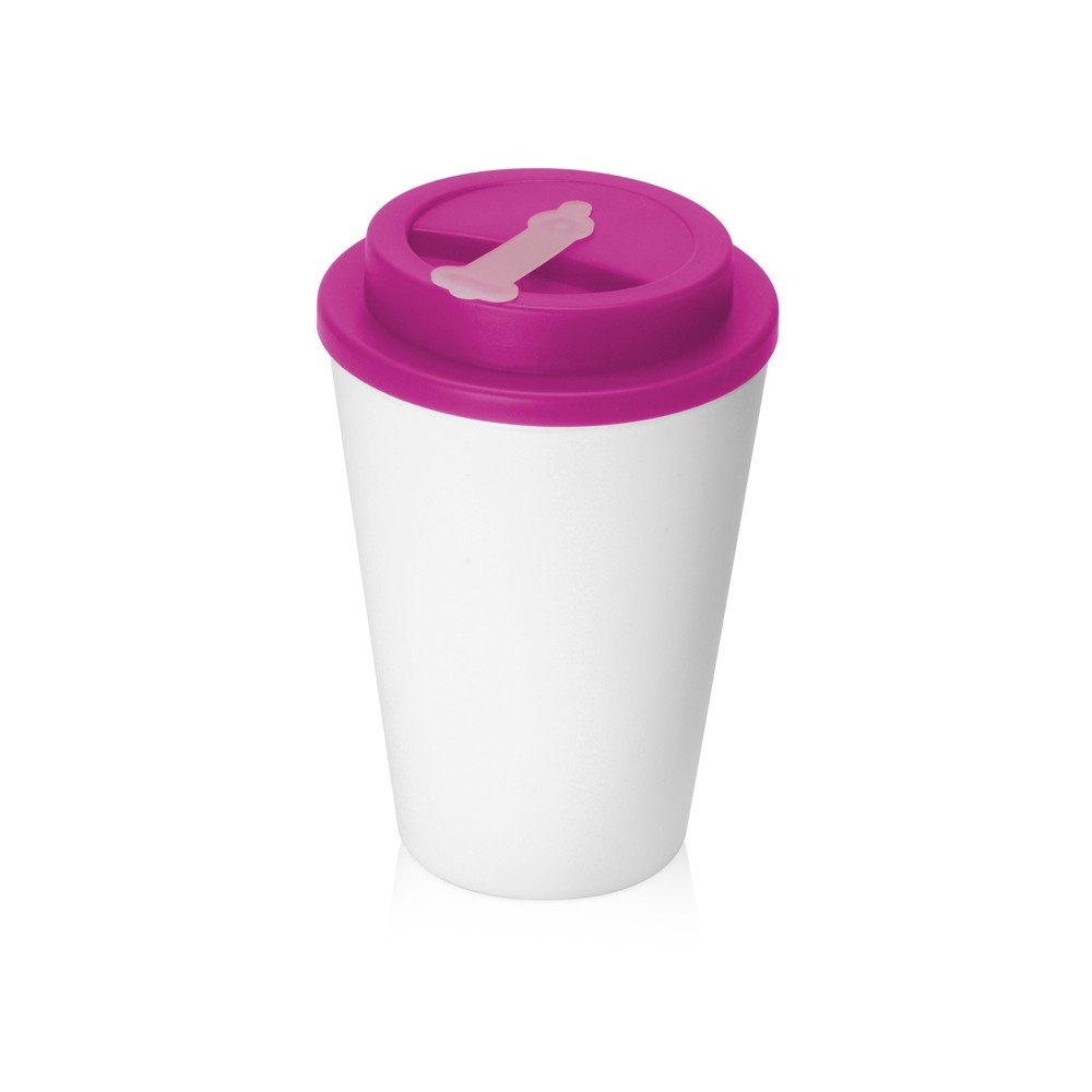 Технические характеристики Пластиковый стакан Take away с двойными стенками и крышкой с силиконовым клапаном, 350 мл, белый/фуксия