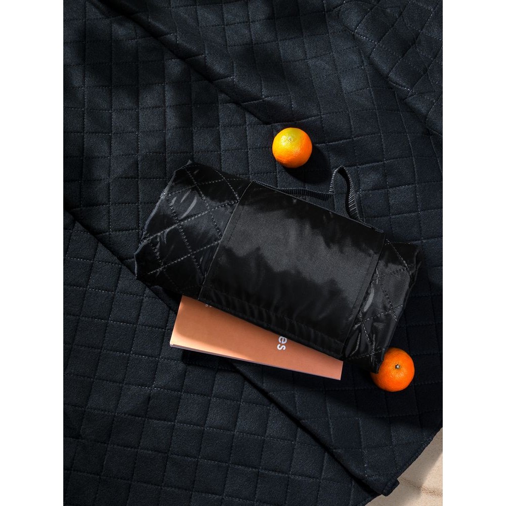 Складной двусторонний плед незаменим на пикнике, на природе или на пляже. На внутренней стороне из флиса приятно и тепло сидеть, а наружная сторона из полиэстера с водоотталкивающим покрытием не позволяет пледу намокнуть и сильно испачкаться.