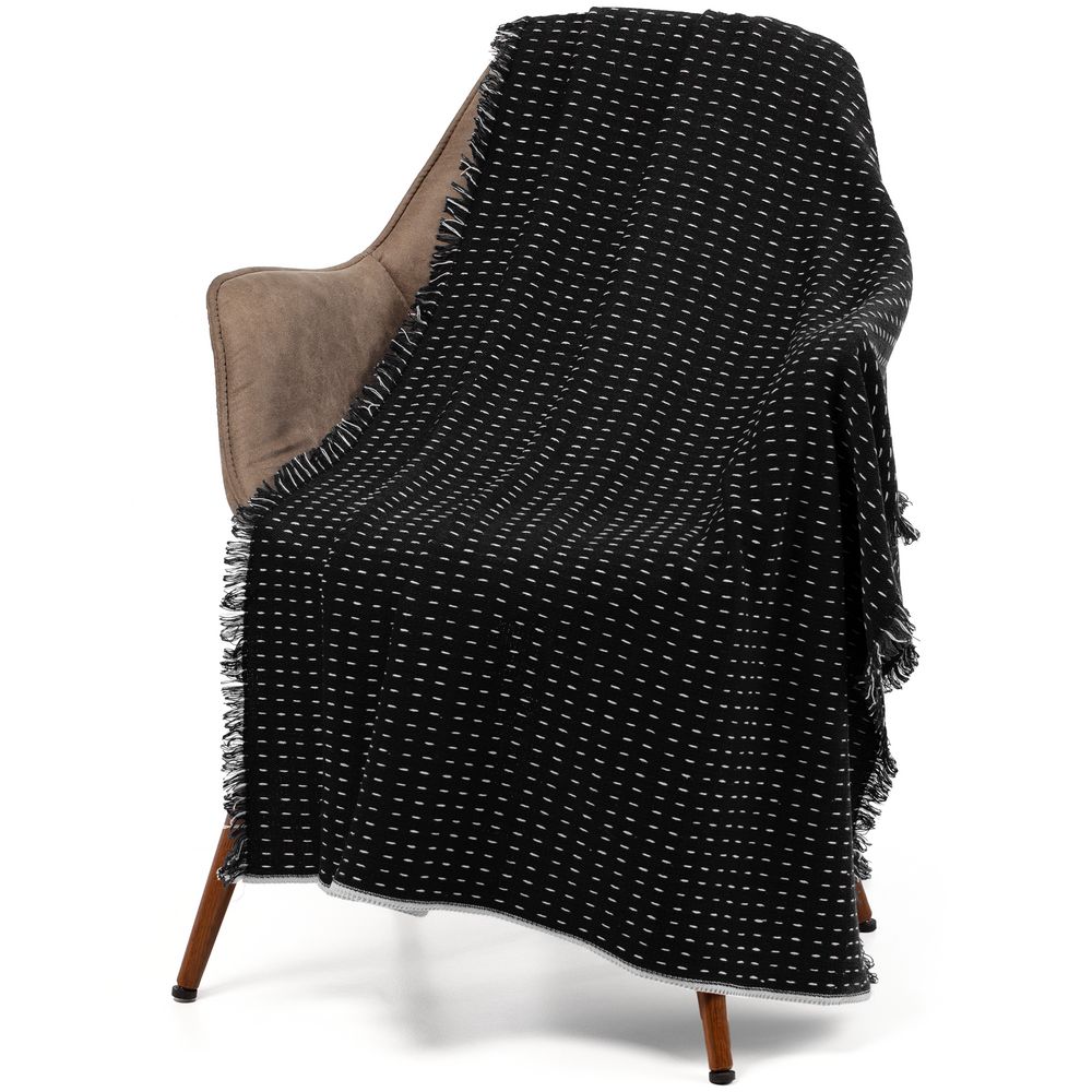 Плед из мягкого акрила Fringy особенный и неповторимый. Он выигрышно выделяется необычным узором — контрастными с основным полотном стежками, дополненными элегантной и аккуратной бахромой. Словно соединив в себе искусство вязания с шитьем, плед гармонично впишется в дизайн современной гостиной или спальни.