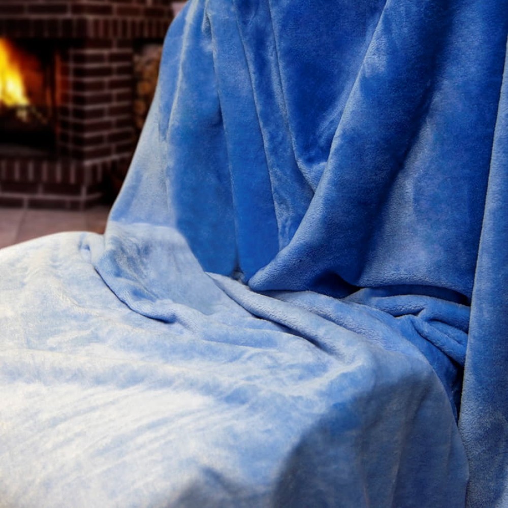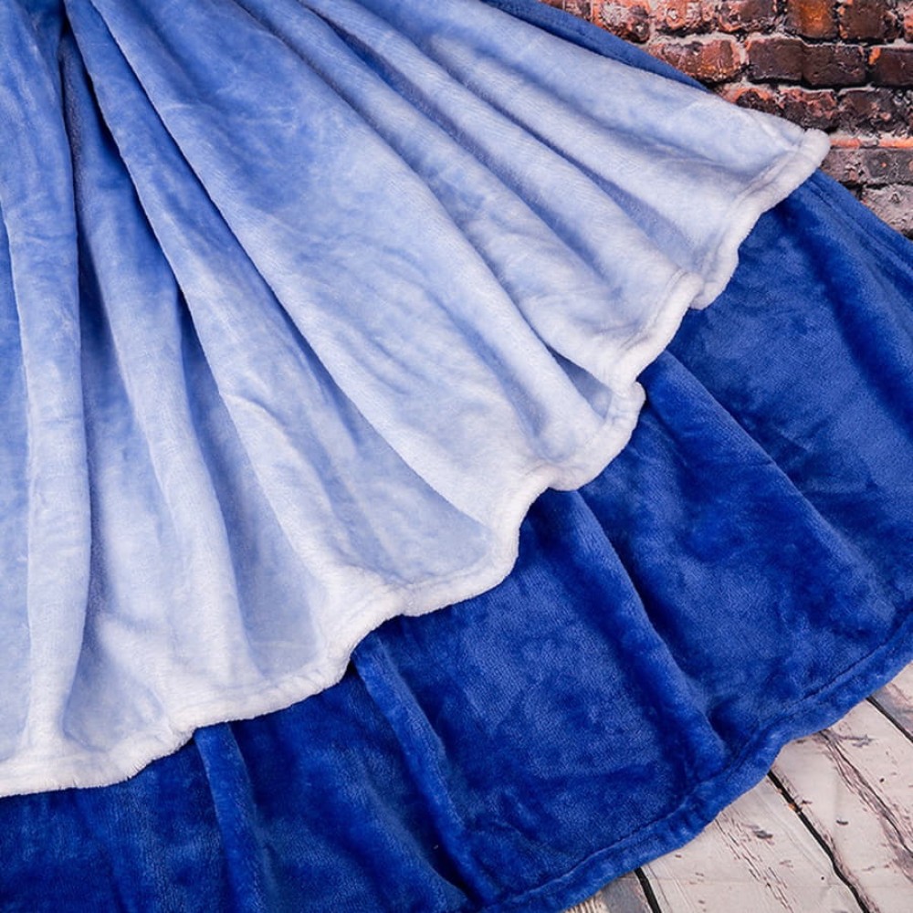 Плед окрашен градиентом - плавный переход от светло-синего к темно-синему оттенку.