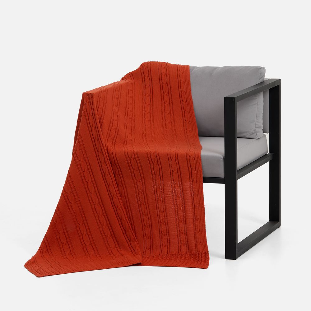 Тонкое переплетение вертикальных кос-жгутов создает благородный стиль, где простота линий встречается с изысканной рельефной текстурой. Плед из мягкого акрила сохраняет тепло, оставаясь удивительно легким и воздушным.